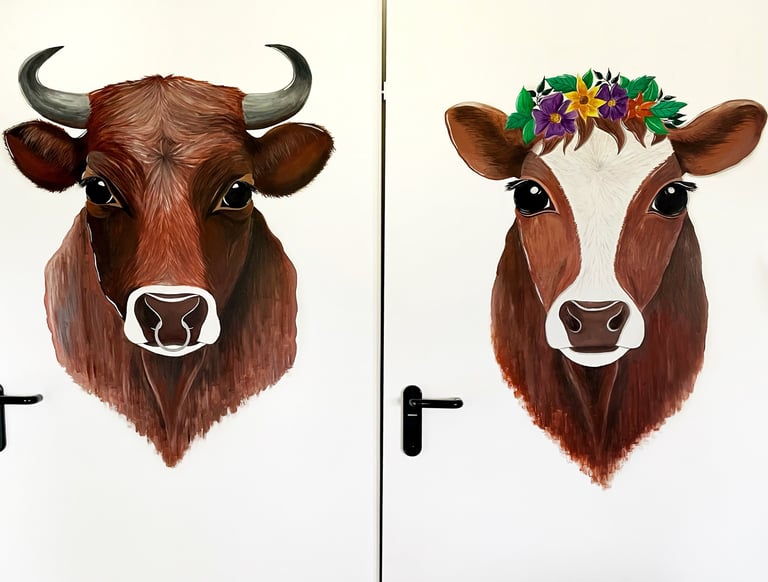 Hauptsächlich male ich auf Aquarellpapier, aber ich durfte bereits Aufträge auf unterschiedlichsten Untergründen und in verschiedenen Größen umgesetzen: Holz, Glas, Stein, große Türen oder (Schau-)Fenster - fast jeder Untergrund lässt sich verschönern.